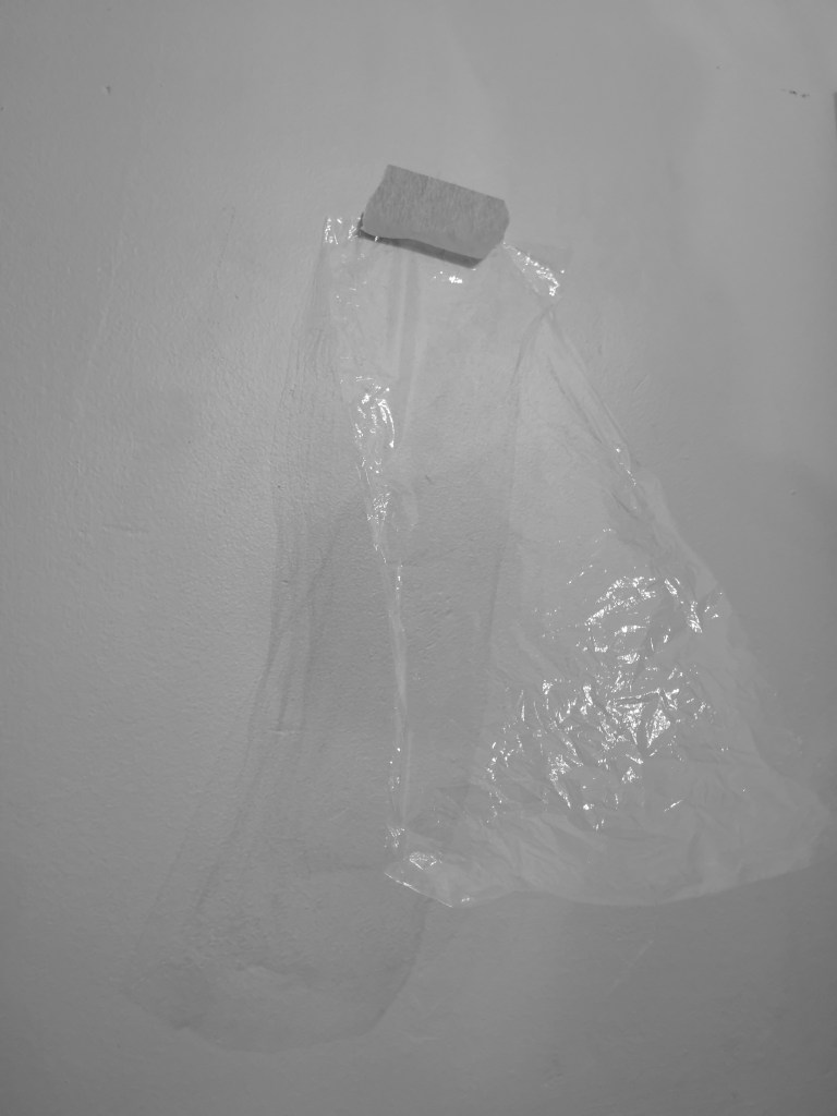 This is a little thing I made for my roommates (located our living room wall) and was inspired by the look of how light reflected off of seran wrap as I was preparing my lunch for tomorrow. I initially wanted to hold it up and have my hands in the shot but realized I couldn’t do that by myself. So I used some tape. I actually quite like how the tape brings a blotch of grey into the photo. Overall, I was happy with how the light bounced off of used seran wrap, and the resulting shadows in the photo gave me a pleasant surprise.