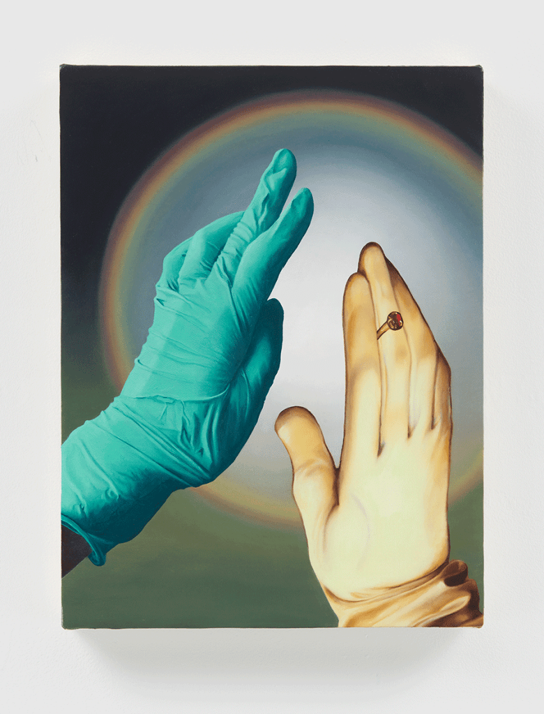 Claire Lehmann, Painter’s Hand, Patron’s Hand, 2017–18, oil on canvas on panel, 31 × 23 cm.