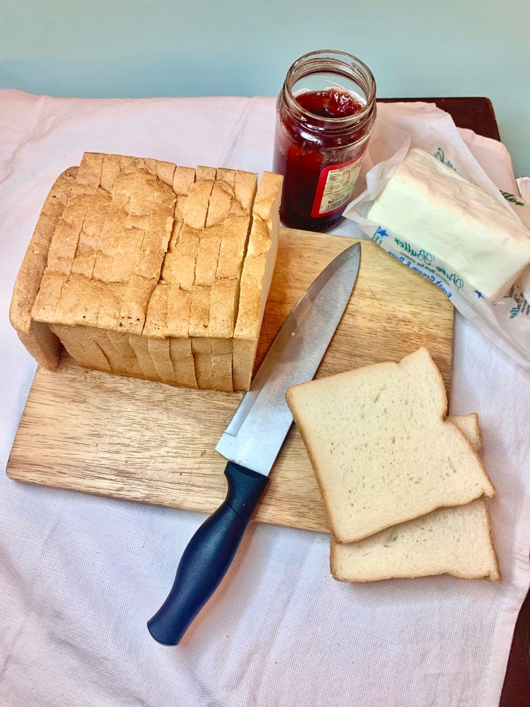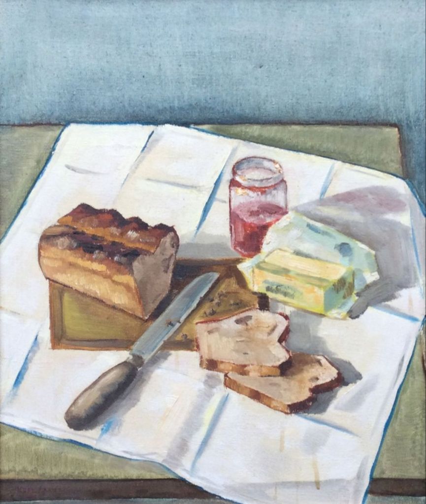 This is a photographic recreation of ‘At the Breakfast Table’ by Kees Jansen. It was originally an oil painting made on canvas in 1922. To recreate the painting, I laid out a blue paper as background and placed a wooden table with a white kitchen towel. Jansen paints a loaf of bread along with a sharp knife, a block of butter and a berry jam so I placed all of these things strategically using the painting as reference. One of the main components of the still life painting is the creation of shadows due to the placement of each item. In a warmly lit room, I aimed a cool-toned white from the left towards the items producing shadows towards the right of each object accordingly. However, it was difficult to get the shadows to be as strong as the painting and to have a similar depth in their shade. In terms of the painting, Jansen paints an ordinary and simple breakfast meal using three items and I aimed to recreate the simplicity of his work, yet also focusing on more intricate details such as shadows, depth in colour and textures.