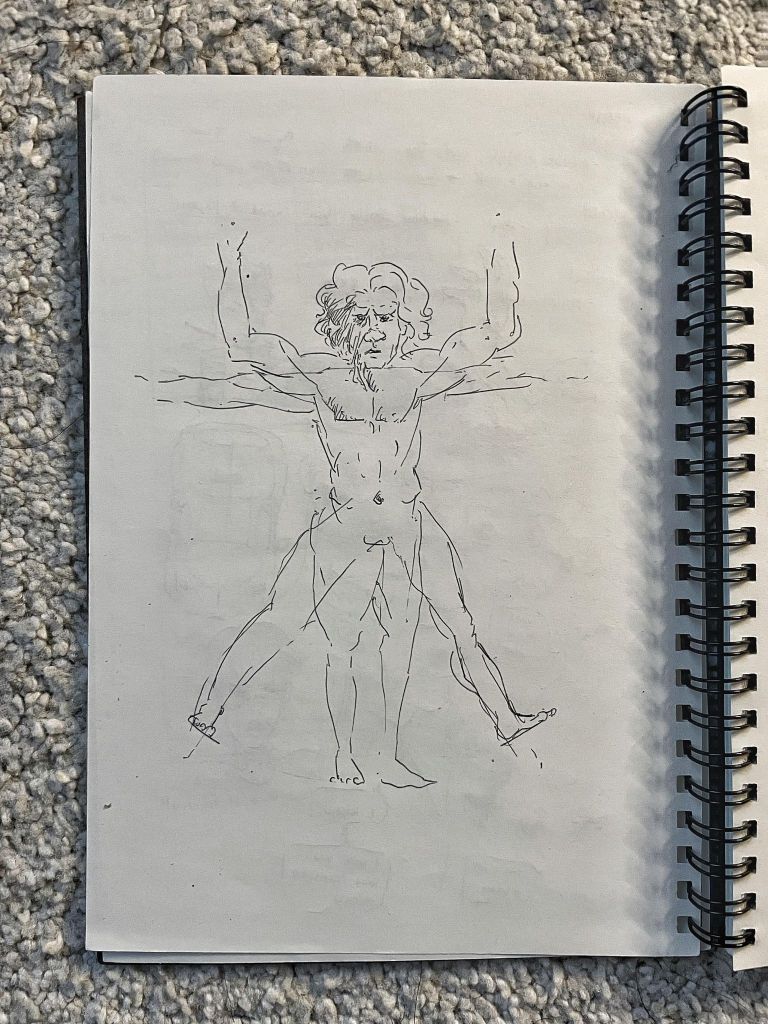 This framework was inspired by Leonardo Da Vinci’s Vitruvian Man. The Vitruvian Man is a significant work of the Renaissance which exemplifies the predominant thought of the time of ‘man as the measure of all things.’ With my piece, I intend to subvert the original by creating a fake that looks at the coloured person, the individual who has often been ignored, overlooked, manipulated, policed and abused. In a sense, the question I hope to raise with this is, if the caucasian man is the measure of all things, then what is the coloured person a measure of?