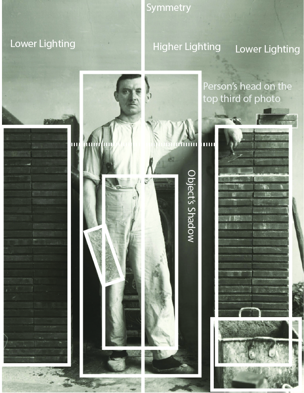Architectural Student is a low contrast black and white photograph based on August Sander’s Master Mason. It is not difficult to see the job of the person from the clothes, tools and background. The photo is filled with rectangular elements that fill the background of the person. Ambient light is coming from the right side of the photo. In composition, the person occupies the center of the photo, and the left and right sides elements are similar, forming a balance. The person’s head occupies one-third in vertical, and the part below the shoulders occupies the remaining two-thirds in vertical. At last I used the above elements to build up my photo.
