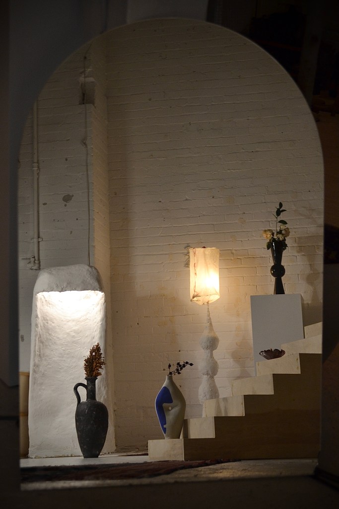 Here are three shots of a ceramic studio in downtown Toronto. The space is operated by Tamara, a multidisciplinary artist with a primary focus on pottery and ceramics. The three shots are framed within in arched mirror, something I found in Tamara’s studio and used to capture her and her artwork within. The three shots follow as: Tamara posing with her work, observing her work, and finally a shot of her work on its own. The decision to use a mirror as a framework meant that I had to stand in the exact same spot each time I clicked the shutter. These three shots lined up the best. Access to a tripod would have eradicated this constraint.