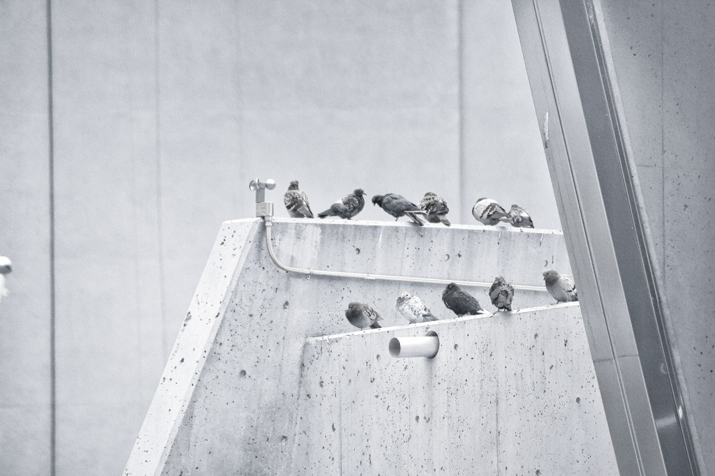 High-key photography is used to produce images that encourage positive responses. The photos High-key photography is used to produce images that encourage positive responses. The photos appear youthful, energetic, dynamic and refined. The most lively place close to me is the public park outside my window. I noticed that the birds could easily catch my attention compared to the walking people on the ground because they could reach the same height as my window. So I took pictures of the birds resting on the structures. I tried to avoid the complex environment as my background but only kept the simple architectural line to show the context. The purpose of the photo is to zoom in to the lively elements in this modern and industrial city. I kept the natural dark part of the bird, to highlight their differences. And their random posture and curvy line forms a high contrast with the building lines.