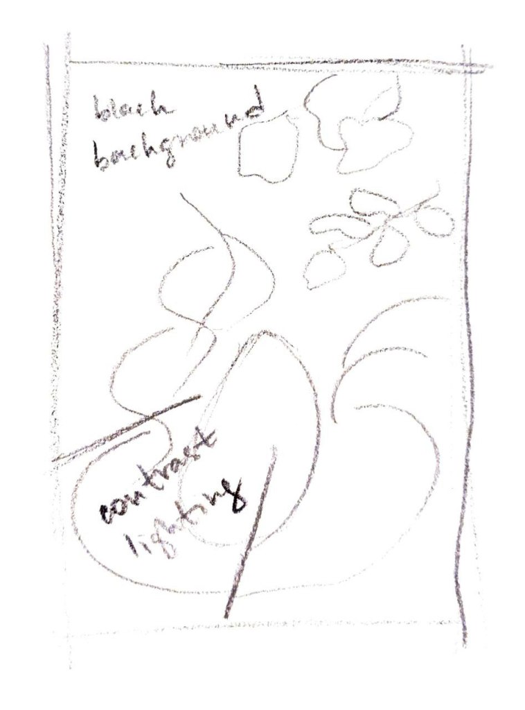 In order to create a low key composition, I staged a dark background and lighting.