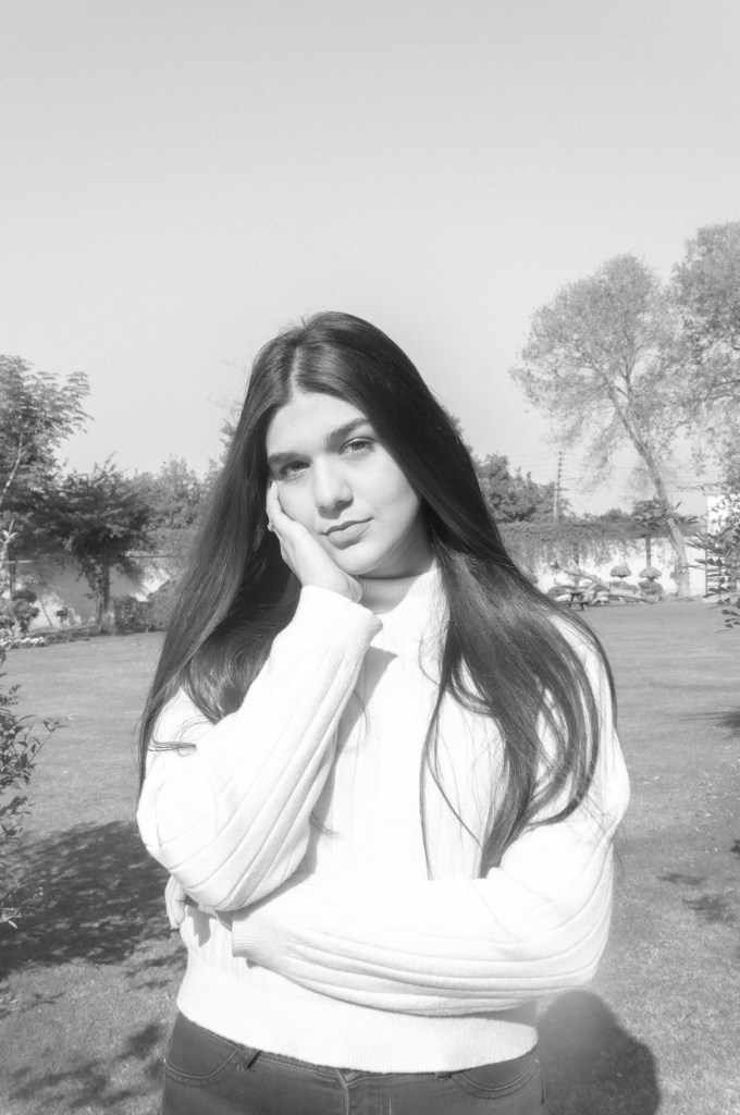 This black and white photograph is an example of high key composition of grey to white. It’s been produced by making use of a brighter background to ensure the softness of shadows. I photographed my friend, Amaniya in my yard on a bright sunny day. This image required skillful editing, which I wasn’t familiar with thus I had to experiment for a while to see what looked better. The contrasting shades emphasizes the details in the image effectively, yet still gives the image a soft appearance.