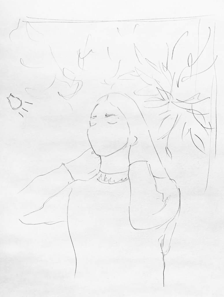 This black and white photograph is an example of a low key composition of grey to black. I photographed my friend, Amaniya in my yard on a bright sunny day. I choose a spot with darker shadows as the background for the image, but ensured that the sunlight hit Amaniya’s face and clothes highlighting the subject. I set the ISO to the minimum to create a dramatic effect and emphasized the darker shadows in the image. While the details in the background might not be as clear, I made sure to focus on Amaniya’s facial features and hand placement to effectively portray her expression.