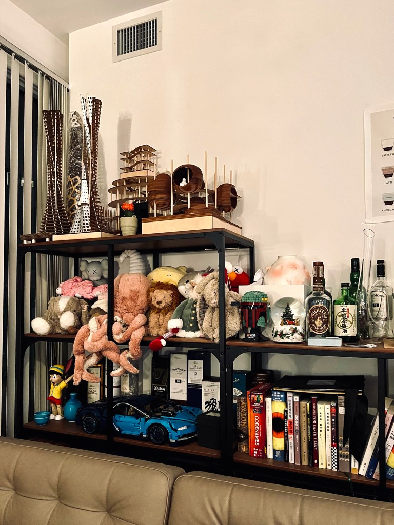 Originally, I was going to frame the scene from a further and higher angle to capture more items. While I was taking this photo, a lower and closer shot is found better, as it creates more sensations of coziness, and zooming in into more details in the collection.