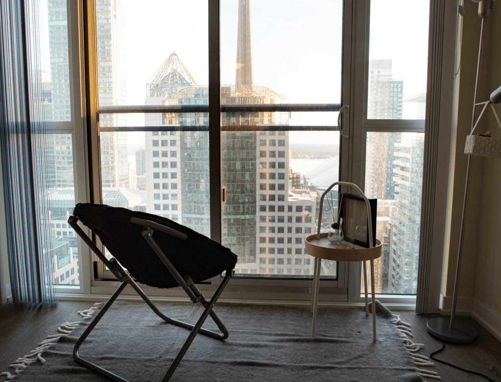 The interior spaces I’m interested in are the windows of my Toronto apartment. This is a large window, when you are sitting on the sofa, you can see The CN Tower. The reason for me interesting in this window is that the decoration here is designed by myself. It can allow me to relax myself when I am working or doing my homework. Because I often have an afternoon tea here in my free time. When I took this photo, I chose the afternoon and took it with deep depth of field, then we can see everything outside the window and the sunshine.