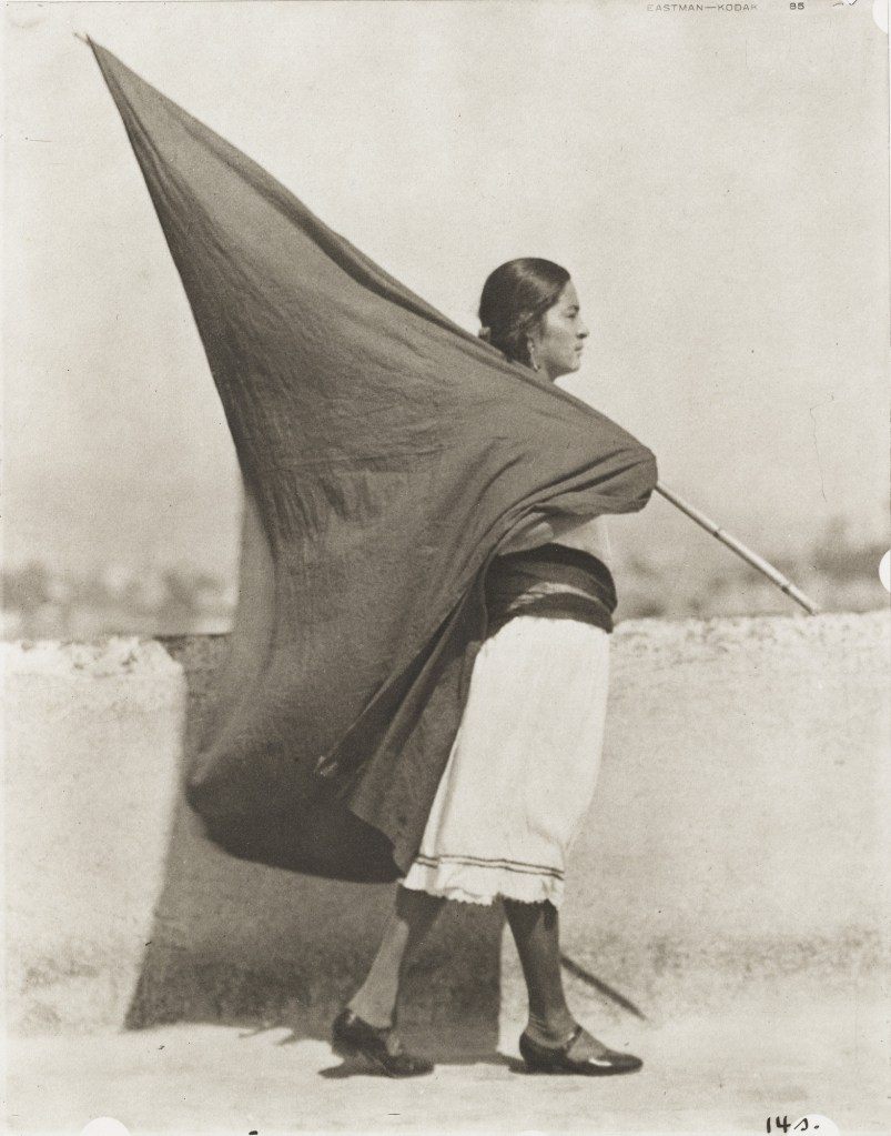 For this week’s framework, I decided to recreate Tina Modotti’s ‘Woman with Flag’ from 1928. It was originally a black and white photograph of a young indigenous woman carrying a flag. The photograph itself writes that women at the backdrop of Mexican history were treated like slaves, and the artist wanted to depict the women in her country and their living conditions realistically. The woman has an upright posture, thus she looks dignified and strong.