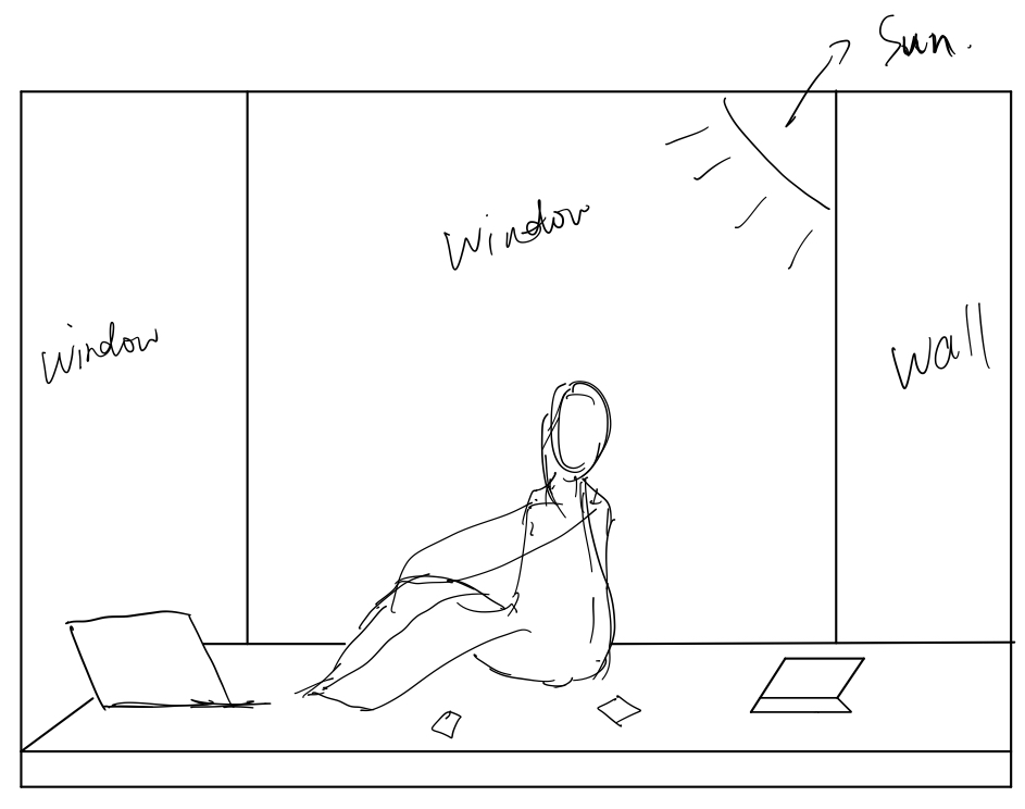 For this framework, I choose Edward Hopper’s work Morning Sun (1952) as my reference image. I invite my roommate as my model.