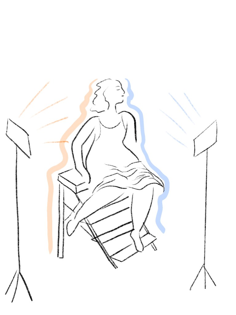 My image portrays a similar dichotomy brought about after the major life upheaval of a pandemic. Although we are eager to move forward and recover from the uncertainty of daily life, the instability of our pasts still follow in the shadows as we move forward with caution. We are as strong as we are delicate. I attempted to express this concept by using two lights, one warm and one cool, to cast two shadows of myself. A lingering uncertainty behind and a hopefulness ahead was also experienced by many women in the post-war period.