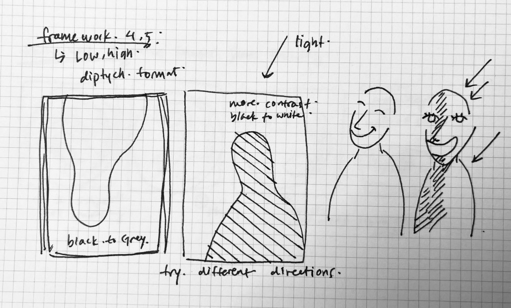This served as a great camera and post-production exercise for me as I was able to explore high and low key components within a black and white image. With this, I wanted to utilize the dramatic effects and contrast high and low key compositions could give together. Creating a diptych-like format and similar thematic exploration of pure emotions, I played around different angles of capture as well to create a piece that would work better together as a whole. I had asked the models that functioned as my subjects to feel free to move around and create various facial expressions so that the images I can capture have fluidity and liveliness. In addition, I tried to create unity with intention as well through their outfit of choice. Having a leather material where lights reflect around it actively, I strived to use it to my advantage.