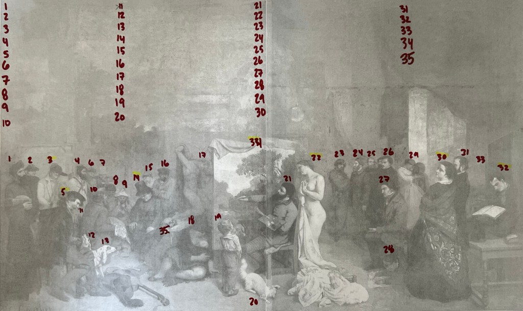 Working from the supplied frame of reference – The Painter’s Studio by Gustave Courbet, 1855 – students will do individual and group research, photographic image making, post content to course website/blog, and produce prints for critique.