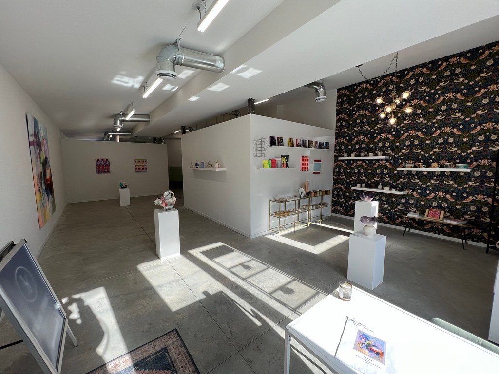 Fourth wall available to exhibit your work between two of the three walls of the gallery space. This wall is not visible from the main entrance.