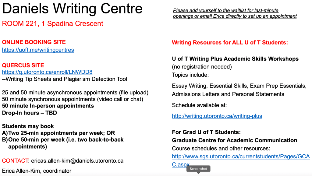 There are many resources for you to make use of through the Daniels Writing Centre.